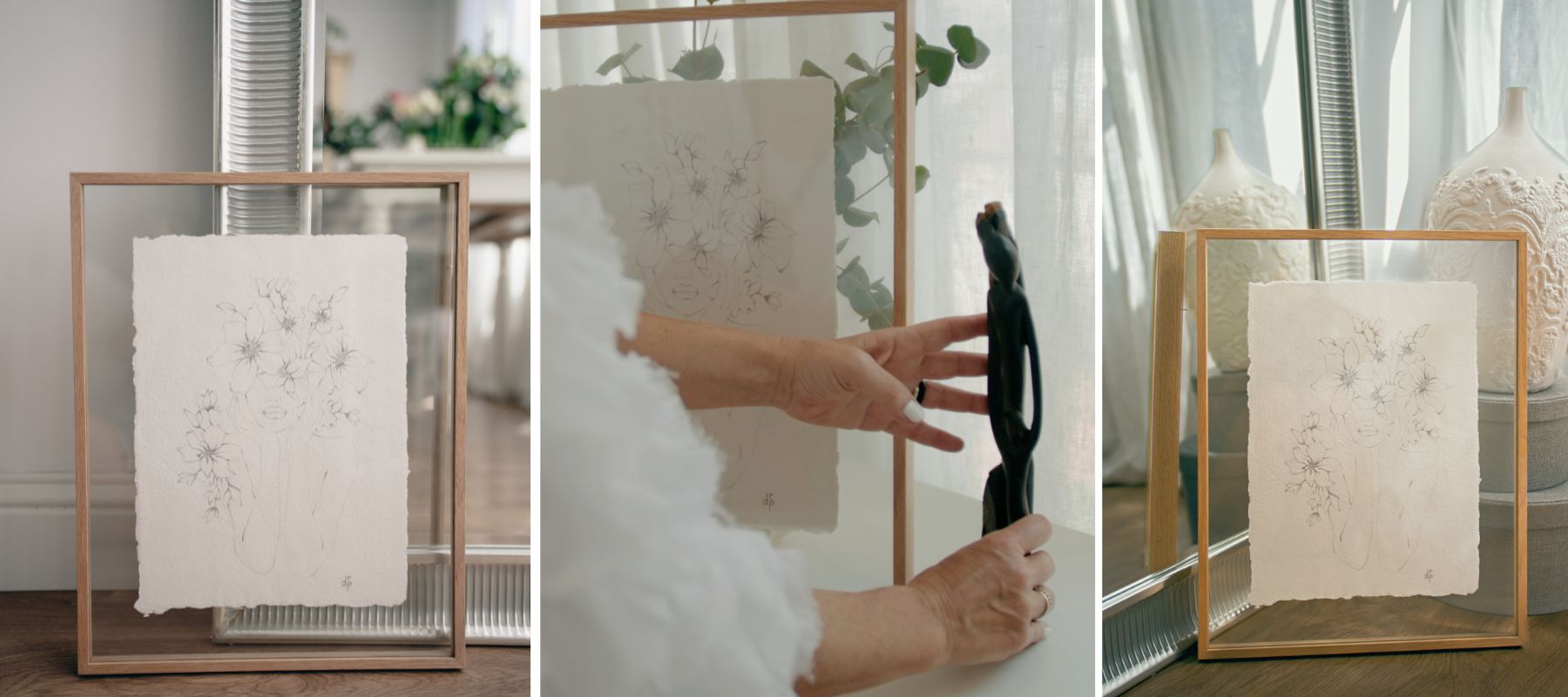 Obras decorativas hechas a mano utilizando lápiz o carboncillo sobre papeles artesanales de algodón o lino, provenientes de papelerías de nicho. Cada dibujo es único y en edición limitada. Cada obra, realizada con trazos elegantes e imperfectos, es un tributo a la belleza auténtica y a la riqueza interior de las mujeres.