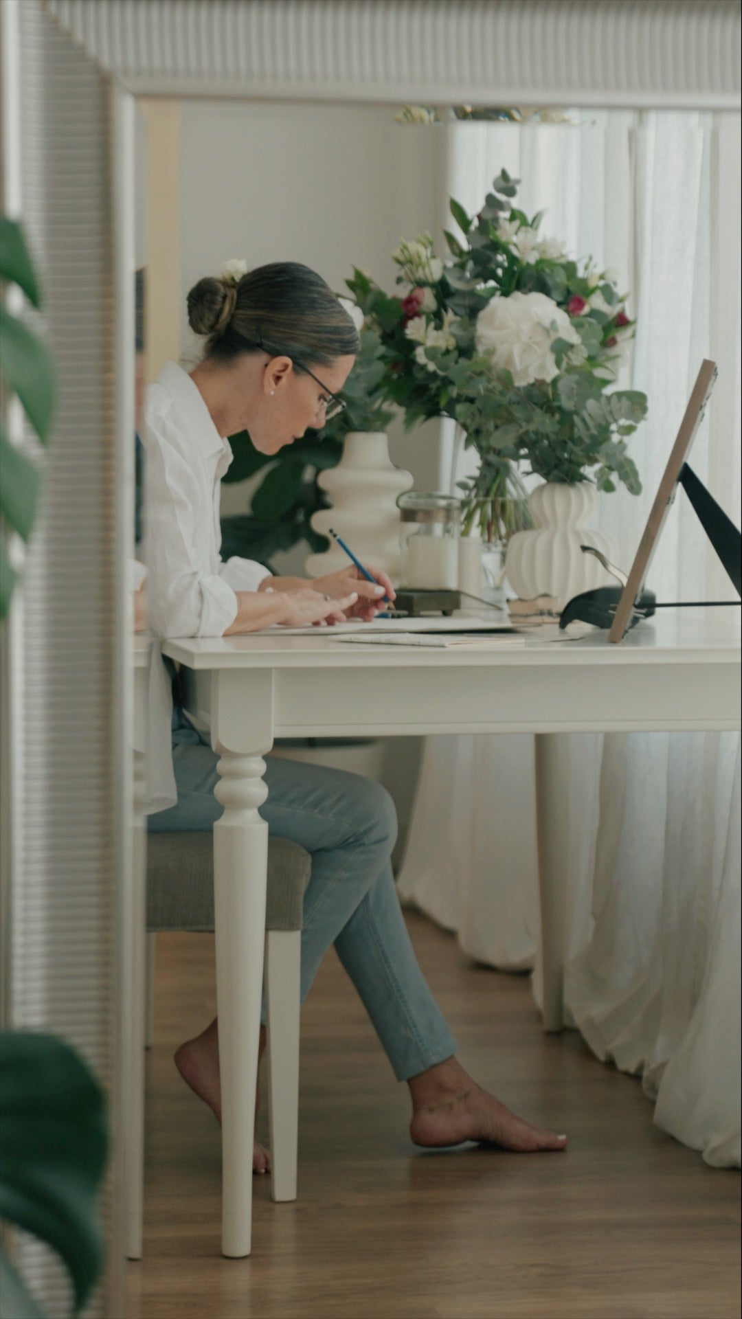 Soy Romina, italiana, y desde 2016 vivo en Barcelona con mi familia. Durante casi 20 años trabajé con la asociación humanitaria “Tante mani per... uno sviluppo solidale”, que opera en Burkina Faso y Brasil, dedicándome especialmente a proyectos para mujeres y niños. Después de una década de trabajo en el terreno, decidí seguir mi sueño de convertirme en diseñadora de interiores y decoradora. Esta nueva aventura me permitió descubrir una pasión inesperada por la creación de decoraciones artesanales, con un enfoque particular en imágenes estilizadas de mujeres, envueltas en flores y joyas, que representan una belleza única y auténtica.